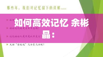 余彬晶的高效记忆方法为我们在信息时代提供了宝贵的指导。通过理解记忆的本质,运用联想记忆法、构建记忆宫殿、分段记忆、利用记忆曲线、结合多种感官以及实践与反思,我们可以显著提高自己的记忆能力。记住,记忆是一项技能,通过不断练习和改进,我们都可以成为记忆的高手。
